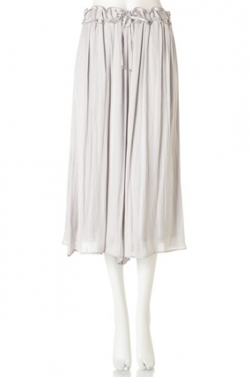 ウエストフリルギャザーでリラックスして穿けるドレープパンツ!ランダムに入った流れるドレープに、光沢感がレディを格上げしてくれそう。トップスをコンパクトにしてINしたり、ボリュームスリーブトップスと合わせたり、ワイドシルエットを活かしたスタイルが組めます。