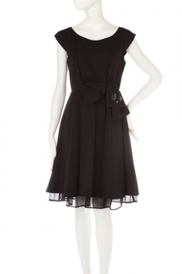 立体的なリボンが計算されたボリュームで施されたワンピース!ハリのある素材で、フィット&フレアシルエットを上品に見せてくれます。裾の透け素材は、オーガンジーで長すぎず短すぎない丈で奥行きを出してくれます。ストールなどを羽織らなくても1枚でキマるところもポイントです。※裏地付き