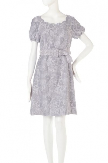 落ち着いたフローラルジャガードで品良く仕立てたフレアワンピース!トレンドのスカラップを襟元で取り入れることで、パーティーシーンで羽織りなしで着られる1枚で完成度の高いアイテム。ベルトでウエストマークして、しっかりした印象に仕上げて着こなせます。※裏地付き