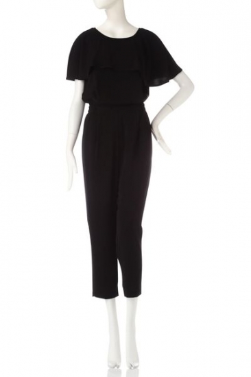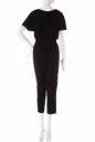 ケープ付きドレッシーなオールインワン!デコルテに波打つラッフルケープでフェミニンなボリューム出しをしています。ケープは取り外しができ、外すとシンプルなノースリーブへとサマ変わりします。グログランリボンが2つドッキングした後ろ姿がジルバイらしいポイントをプラス。ジャケットを羽織ればオフィスも対応可。ウエスト引き締め、テーパードシルエットで大人っぽく着こなせる1枚です。※ケープ付き