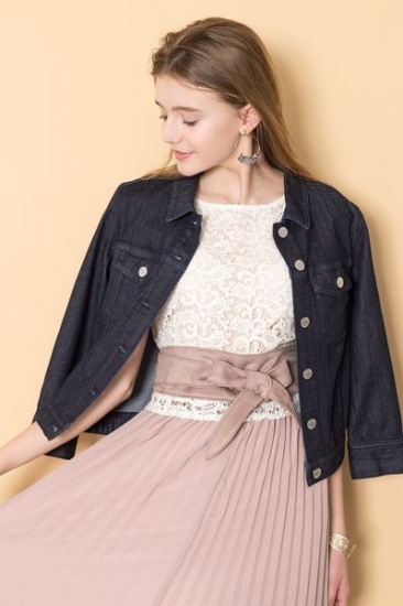 レースブラウス×プリーツスカートのセットアップです。レースブラウスは、奥行きのあるレースに、大きく開いた首元でスッキリとした印象に。スカートは、軽やかなイレギュラーヘムで歩くたびにレディなニュアンスを演出してくれます。同色系で統一感を出しており、甘過ぎない旬なコーディネートの完成です。※上下セットアップ・スカート裏地付き