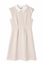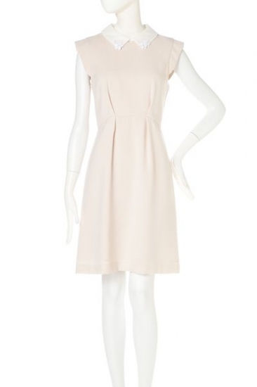 爽やかな上品素材で仕立てた襟付きワンピース!取り外しの出来る襟元にパールやフラワーを立体的にON、華やかなアクセントになり、外すとシンプルなクルーネックです。二の腕をスッキリ見せ、ウエストの中央に向けてタックを施して、女性らしいメリハリを作ったデザインです。※裏地付き・襟取り外し可