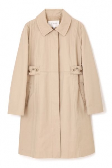春アウターとしてあらゆるシーンで活躍してくれるスプリングコート!撥水加工をしている素材で仕立ており、シミになりにくくしています。ステンカラーにシンプルな比翼仕立て、縦長シルエットでスッキリと、ウエスト部分にキラリと装飾が映えるデザイン。裏地のヨーク部分はレース素材で切り替えられ、外出先で脱いでハンガー掛けやくるんと折り返してた時にチラリと覗かせサマになる1枚です。※裏地付き