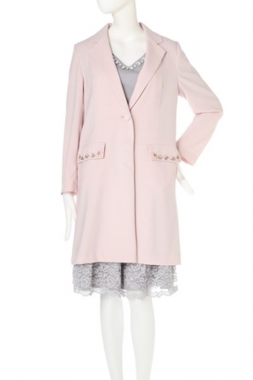 これからの季節に活躍するチェスターコート!春らしいさらっとした風合いに裏地なしで仕立てた1枚。ポケ部分にフラワーモチーフをONしたジルバイらしい可愛いポイントを添えて。裾広がりなロングシルエットでスタイルカバーしつつ、きちんと感もしっかりアピールします。