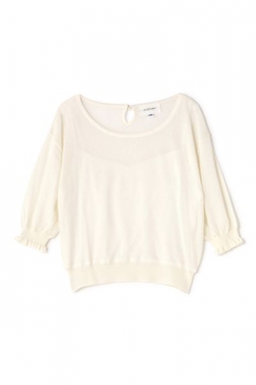 シアーな透けでヌケ感のあるニット!レイヤードしたような見え方で、新しい季節を呼び込み軽快な着こなしへ。袖先フリルや裾リブでメリハリがあり、シンプルながらもトレンドを感じさせる1枚です。