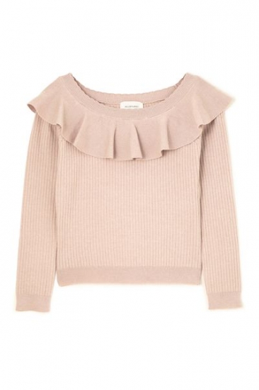 ジルバイらしさが引き立つフリルネックニット!大きなフリルに、身頃のリブ編みでスッキリとしたシルエット演出。後ろのレースダウンがシンプル過ぎずに、抜かりない可愛さをトッピング。コーディネートに合わせやすいので今から重宝してくれます。