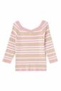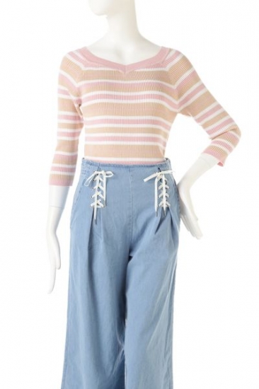 伸縮性のある生地で仕立てたボーダーニット!春カラーで爽やかに垢ぬけて、ボディに沿ったシルエットでスッキリ着こなせます。大きく開いた襟元は今年らしいヌケポイントに。ボリュームスカートやパンツまで着まわしの出来る1枚です。