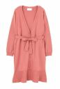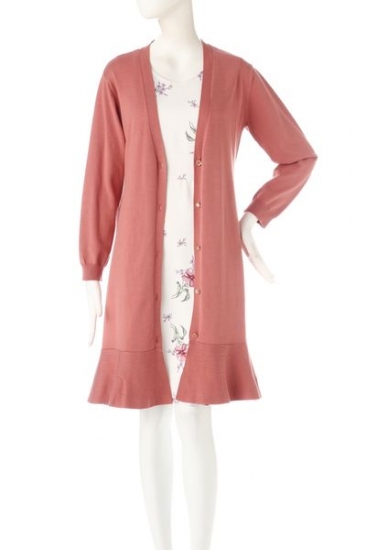 ありそうでないフリルヘムが可愛らしいロングカーディガン!これらの季節に重宝するコットンで仕立て、それぞれ違うフラワーモチーフの釦をドッキングしたこだわりデザイン。共地ベルトでウエストマークしたり、前を開けたり、季節の変わり目に便利なアイテムです。