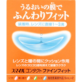“微笑隐形眼镜合身”在佩戴隐形眼镜时,仅用1~3滴在镜头上,对高分子和氨基酸成分的滋润膜起到眼睛和镜头之间的作用。对镜头的浓烈感等不同的事物感,使安装变得容易,实现柔软的镜头的合身感。
