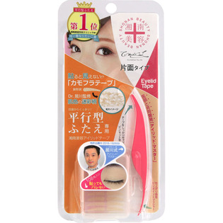 Dr居川監修の目立ちにくい肌色特殊印刷の迷彩柄アイリッドテープは、黒目の目頭側の端から貼るので幅広な平行型ふたえが簡単にできます。