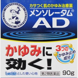 「メンソレータムADクリームm」は、おふろや布団に入って体が温まった時や、下着でこすれたときなどにでる、かかずにいられないかゆみをすばやくスーッとしずめます。