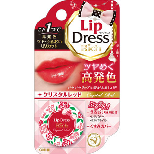 「リップドレスリッチクリスタルレッド5g」は、高発色・ツヤ・うるおい・UVカットがひとつになったとろけるカラーリップバームです。