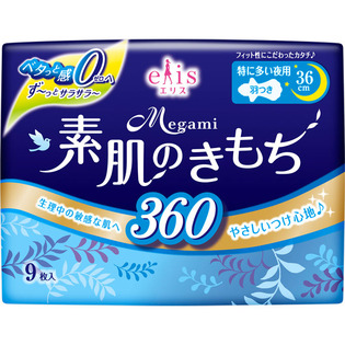 大王製紙 エリスMegami 素肌のきもち(特に多い夜用) 羽つき9枚(医薬部外品)