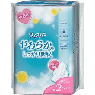 P&Gジャパン ウィスパー やわらか&しっかり吸収 ふつうの日用 (羽つき) 22枚X2(医薬部外品)