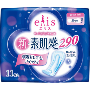 大王製紙 エリス 新・素肌感 (多い日の夜用)羽なし 11枚(医薬部外品)