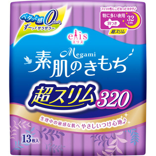 大王製紙 エリスMegami 素肌のきもち 超スリム 特に多い夜用 羽つき13枚(医薬部外品)